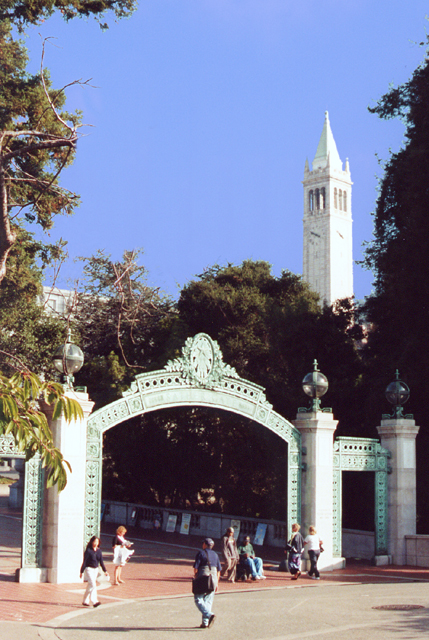 Sather Gate with the Campenile in the background.